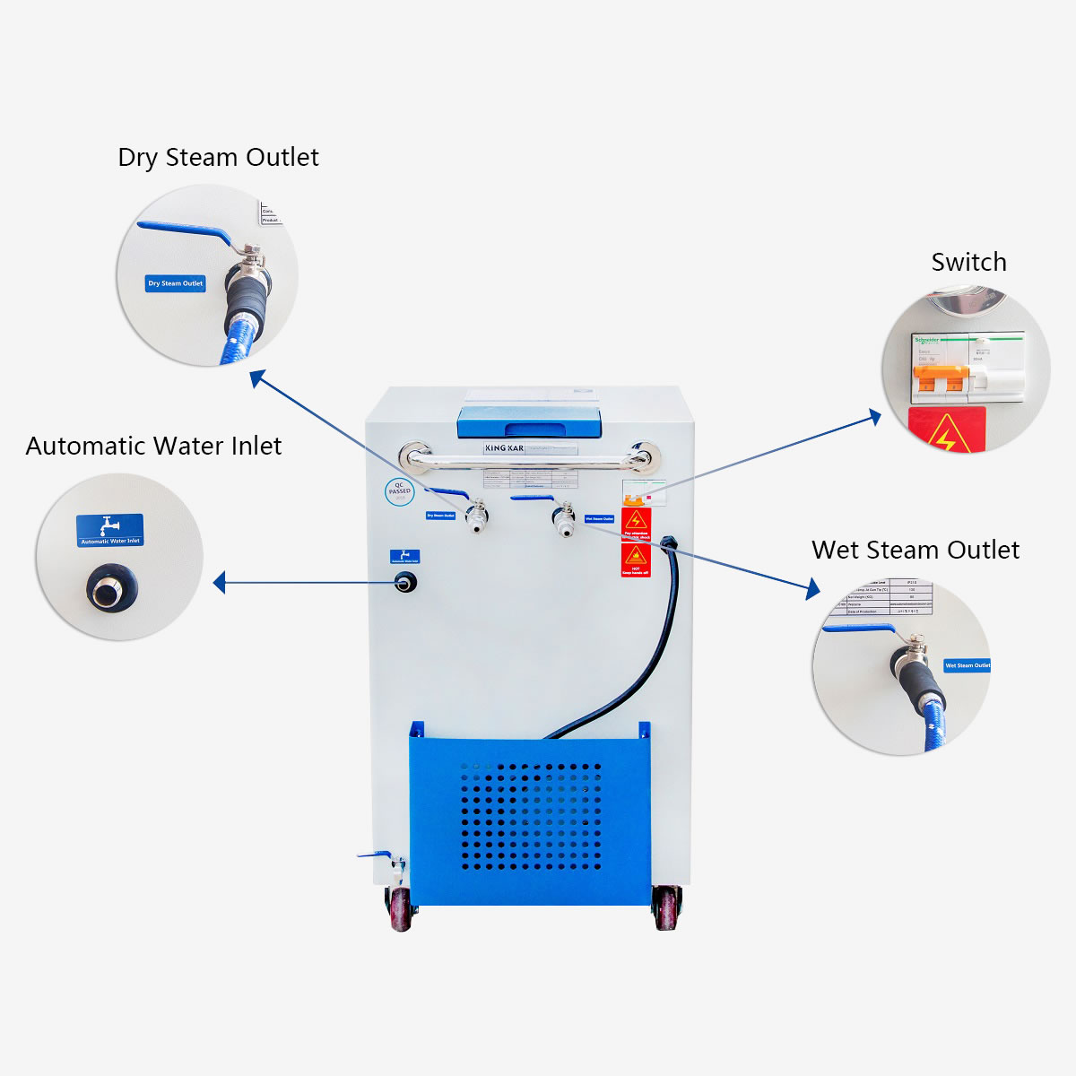 Excellent système de protection de la température, qui consomme moins de 5 degrés par heure, économise de l’énergie et fournit une vapeur continue, riche et puissante pendant le travail. - Système de contrôle intelligent